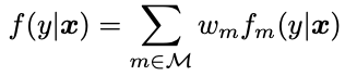 학습데이터에 따라 변화가 크므로 이 모델은 variance가 크다고 말할 수 있다. 앙상블 모델은 이 variance를 줄이기 위한 대안책이다. 앙상블이란 여러 모델의 결과를 평균 또는 voting을 통해 새로운 모델을 만들어내는 것을 말한다. 아래와 같이 M개의 다른 모델에 대해 앙상블 모델을 나타낼 수 있다. 각각의 모델 f_m을 통해 새로운 모델 f을 탄생시키는 것이다.