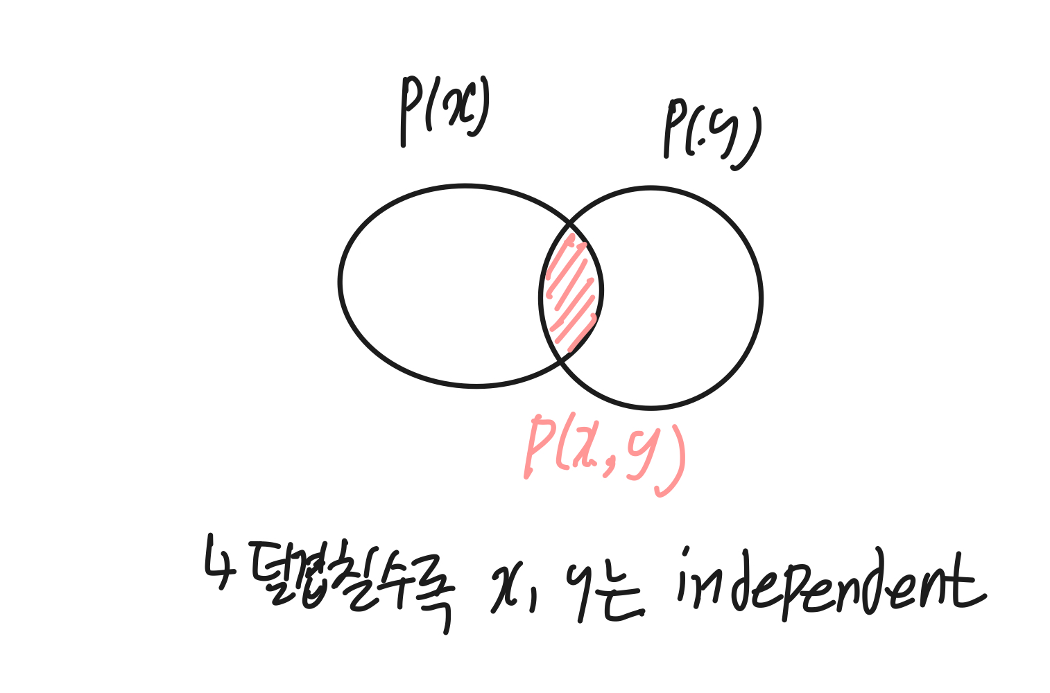 아래의 밴다이어그램을 통해 유사성을 보려면 p(x,y)가 p(x)p(y)와 멀어질수록 좋음을 알 수 있다.