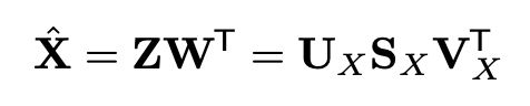 X를 decomposition하니 자연스럽게 Z를 구할 수 있게 되었다. decoding한 X^도 아래와 같이 구할 수 있다. X^가 돌고 돌아 다시 X의 turncated SVD 형태와 동일해졌음을 알 수 있다.
