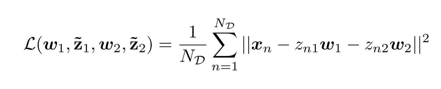 주성분이 여러개일 때에도 최적의 w가 같은 조건을 가진다. 이를 증명하기 위해 Z가 2dim일 때의 reconstruction loss를 살펴보자.
