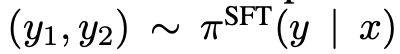 x라는 prompt를 모델의 input으로 준다고 가정하고, SFT로 학습한 모델로 하여금 2개의 output을 생성해내보자. 2개의 output y1, y2를 얻었다.