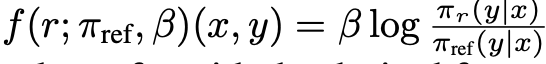 따라서, 언어모델은 그 자체로 reward model의 역할을 하고 있다. 여기서 추가로 f 자체로도 r(x,y)의 역할을 할 수 있긴하다. reward 함수의 log 값에 Z라는 constraint를 더한 것(명제 1에 의하면 constraint를 임의로 주입해도 reward함수의 probability는 동일했다)이기 때문이다.